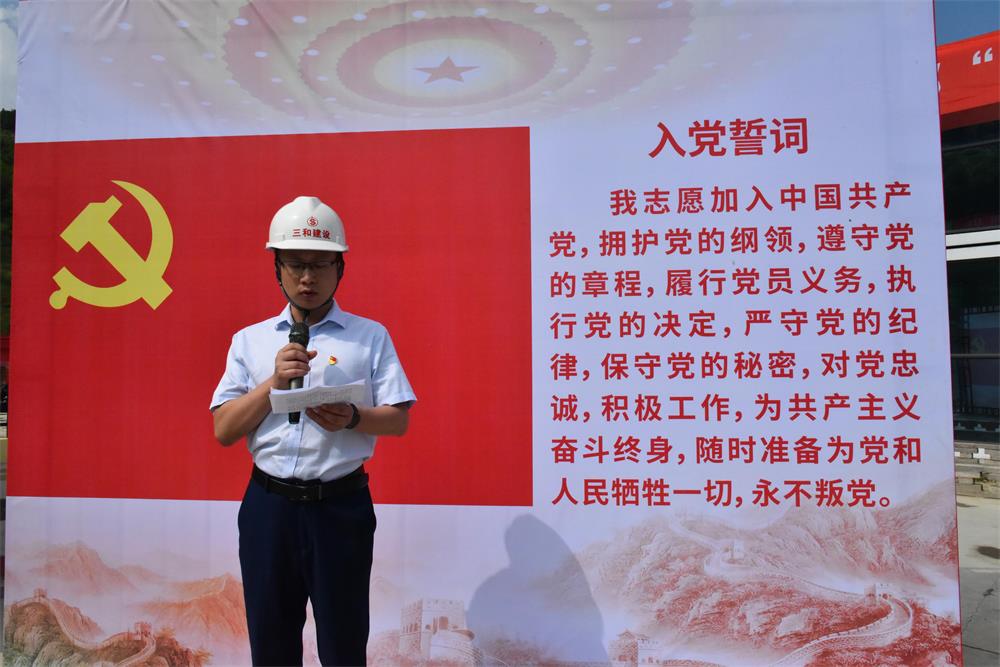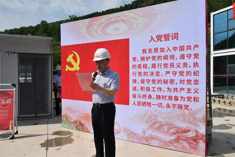 在项目部,面对鲜红的党旗,10名预备党员进行了入党宣誓,牢记共产党员的初心使命。