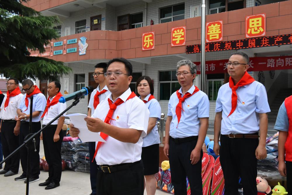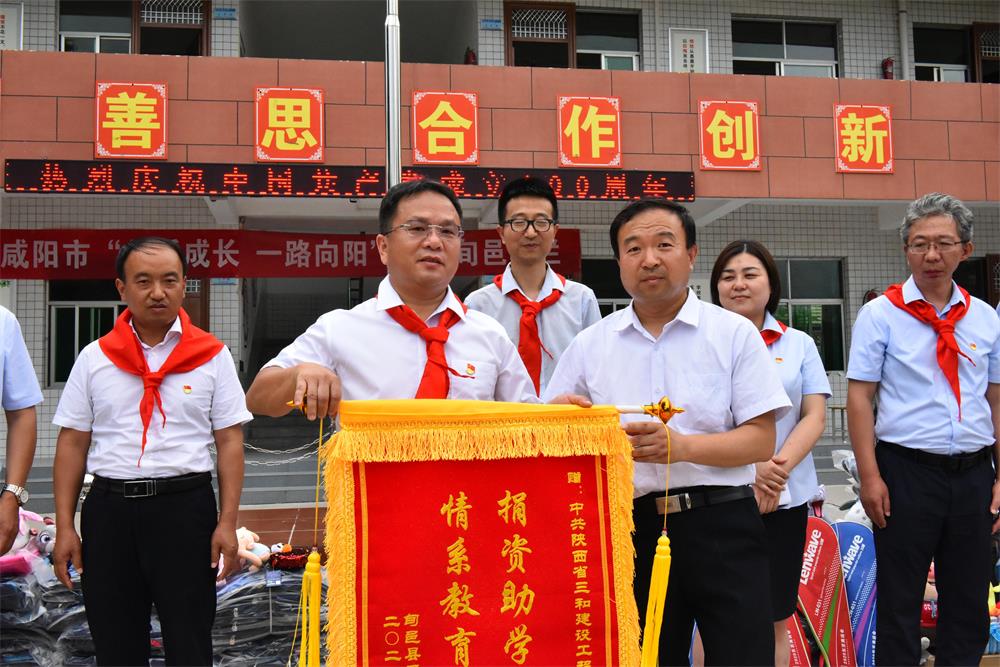 在马栏镇前义阳小学,三和公司领导班子与咸阳市教育局、团市委、咸阳慈善协会及旬邑县相关领导共同参加了“关爱成长、一路向阳”义捐活动,总经理王小平代表公司向校方捐赠了爱心,体现了企业的责任担当,以实际行动落实“学党史,悟思想,办实事,开新局”的总要求。